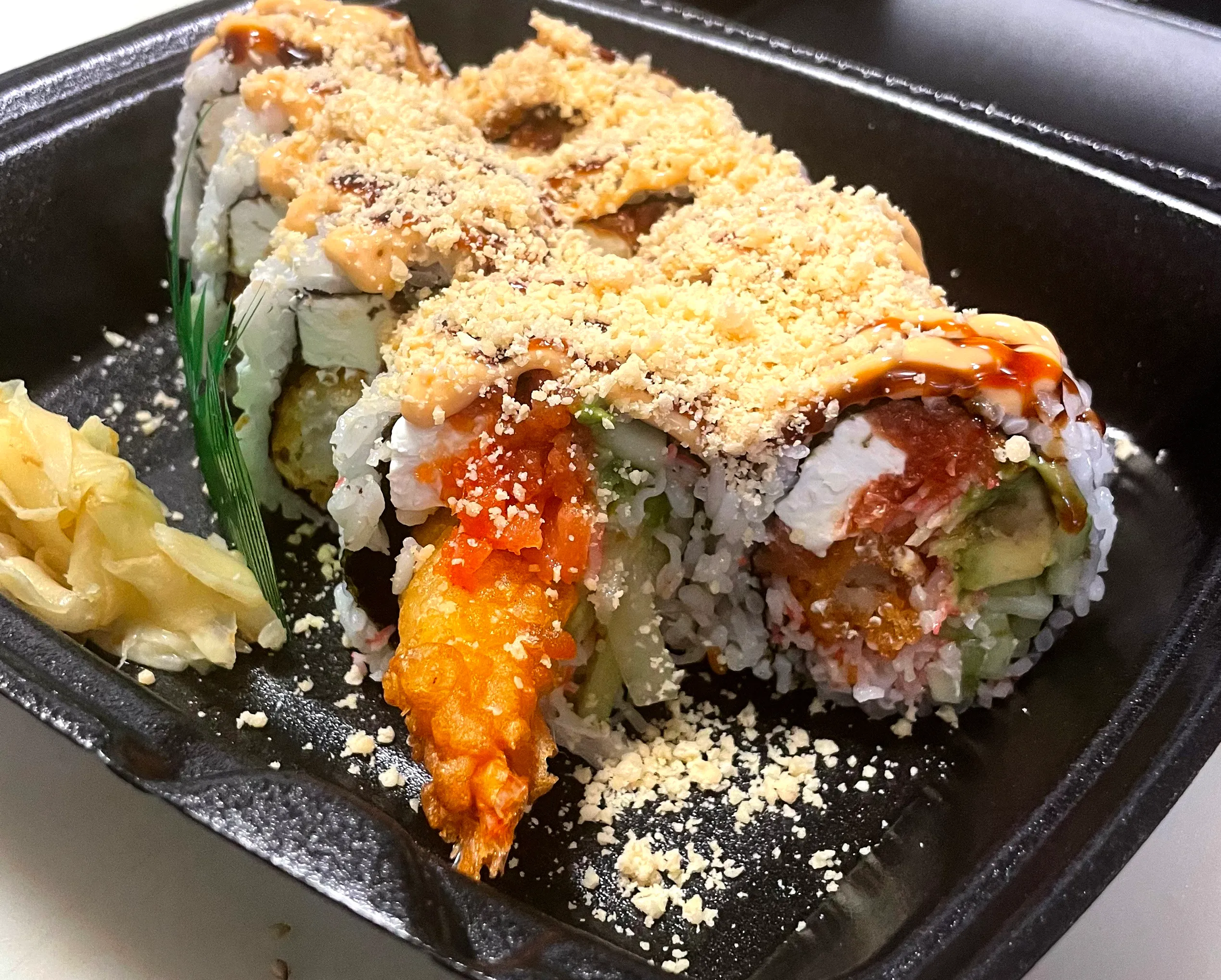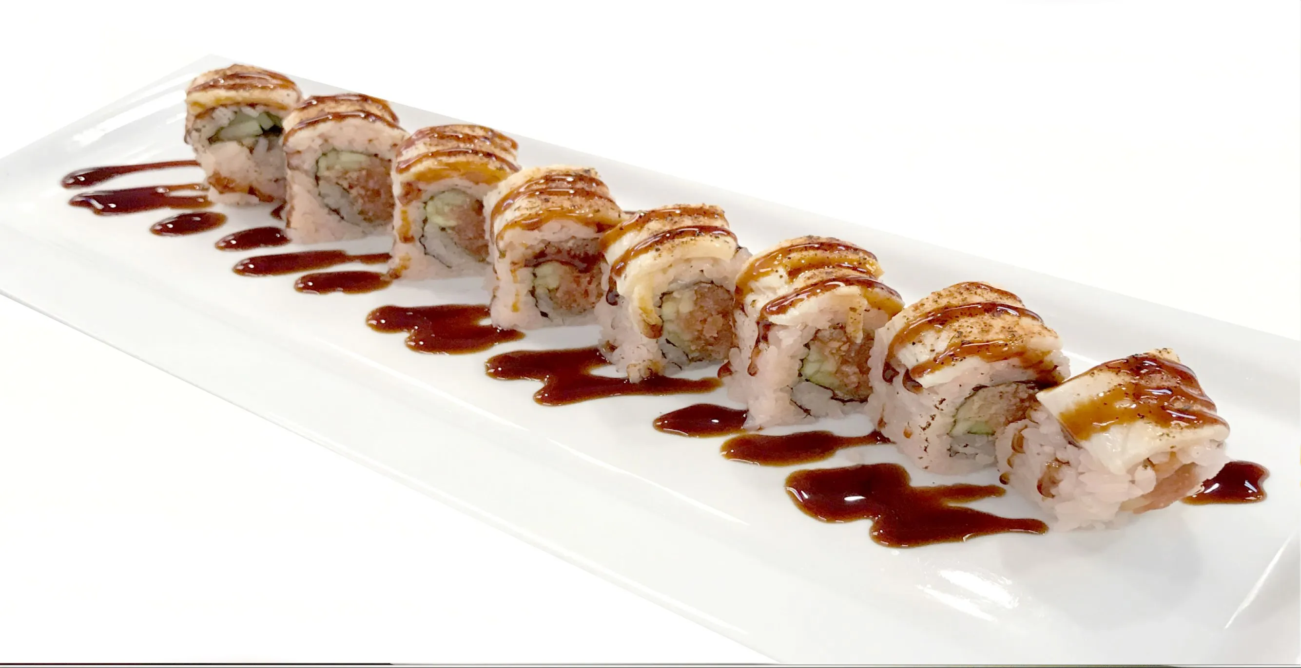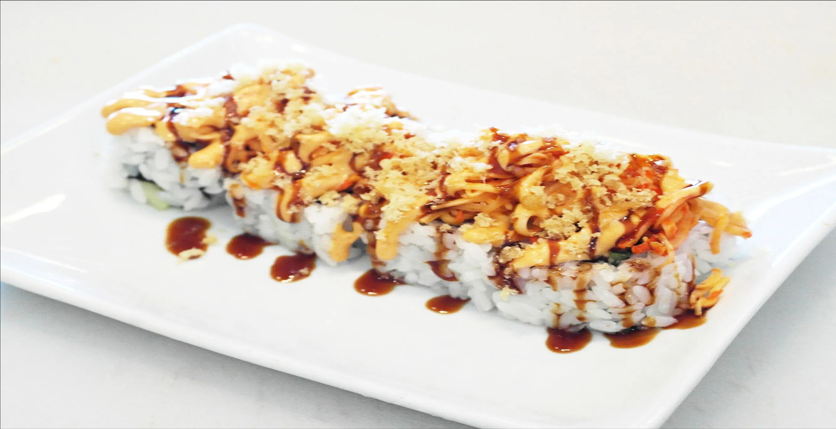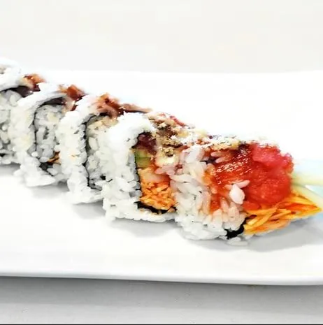 Tuna, Salmon, White Fish, Avocado, Cucumber, Eel Sauce, Crunch With Spicy Dressing