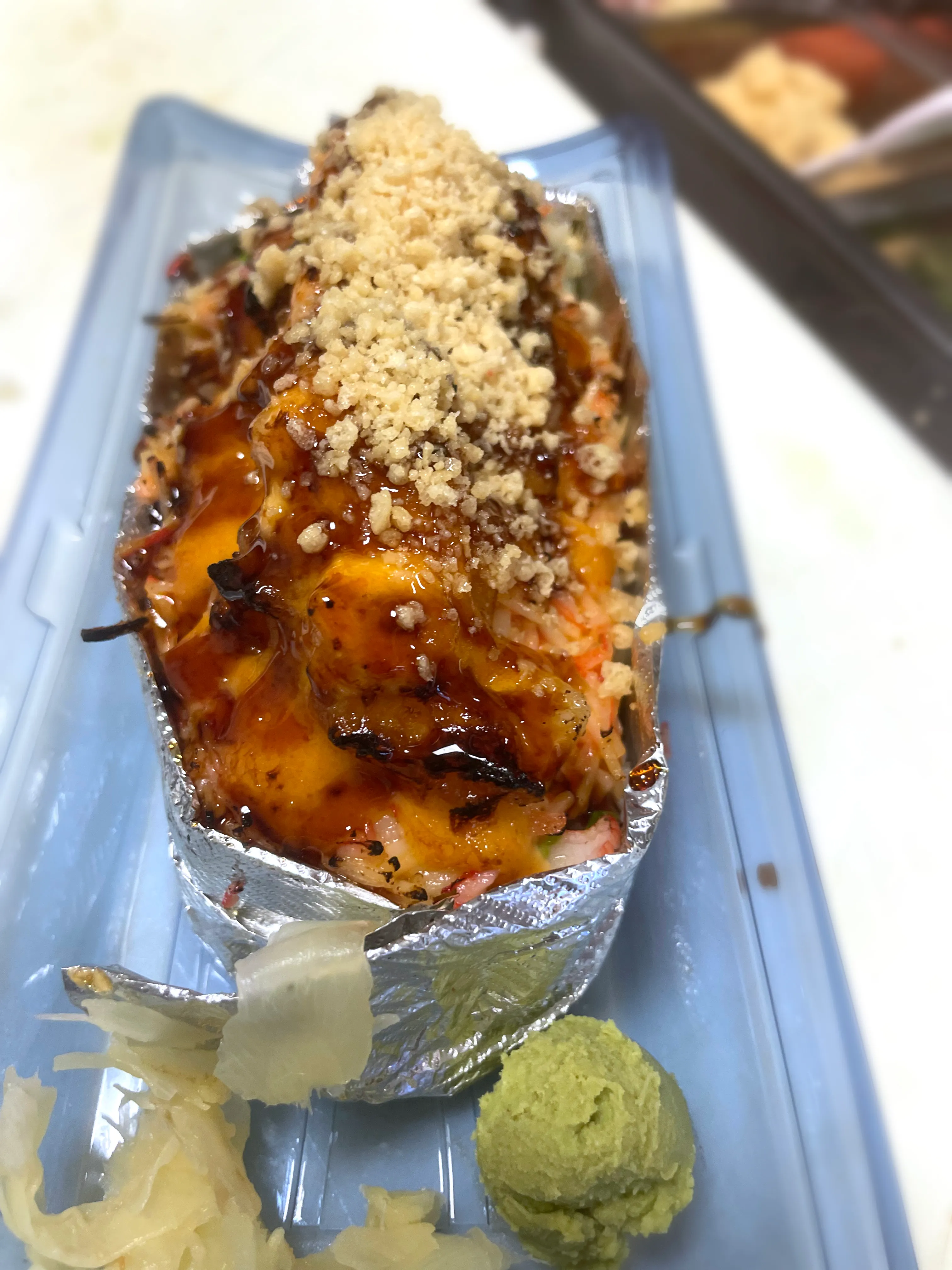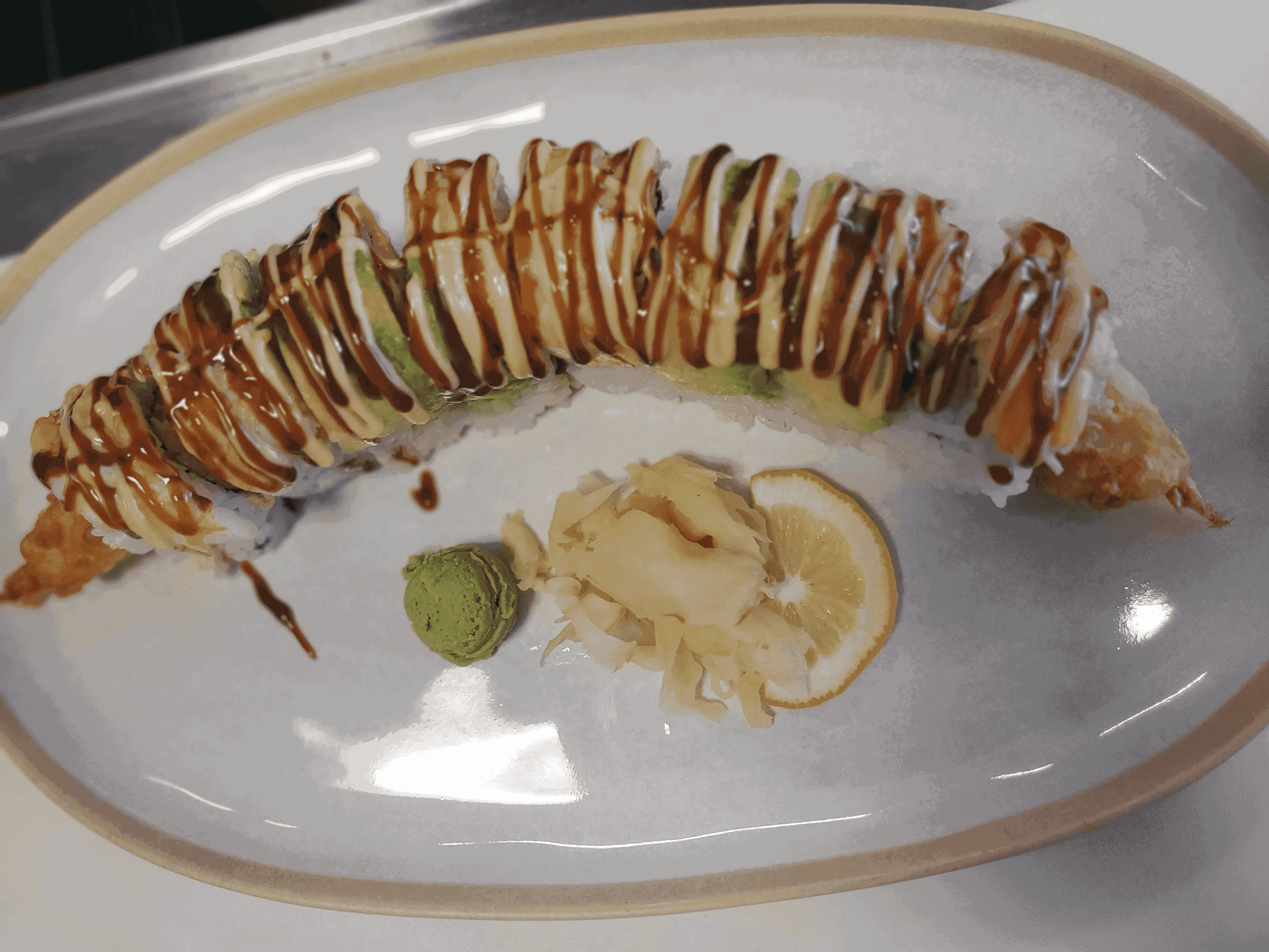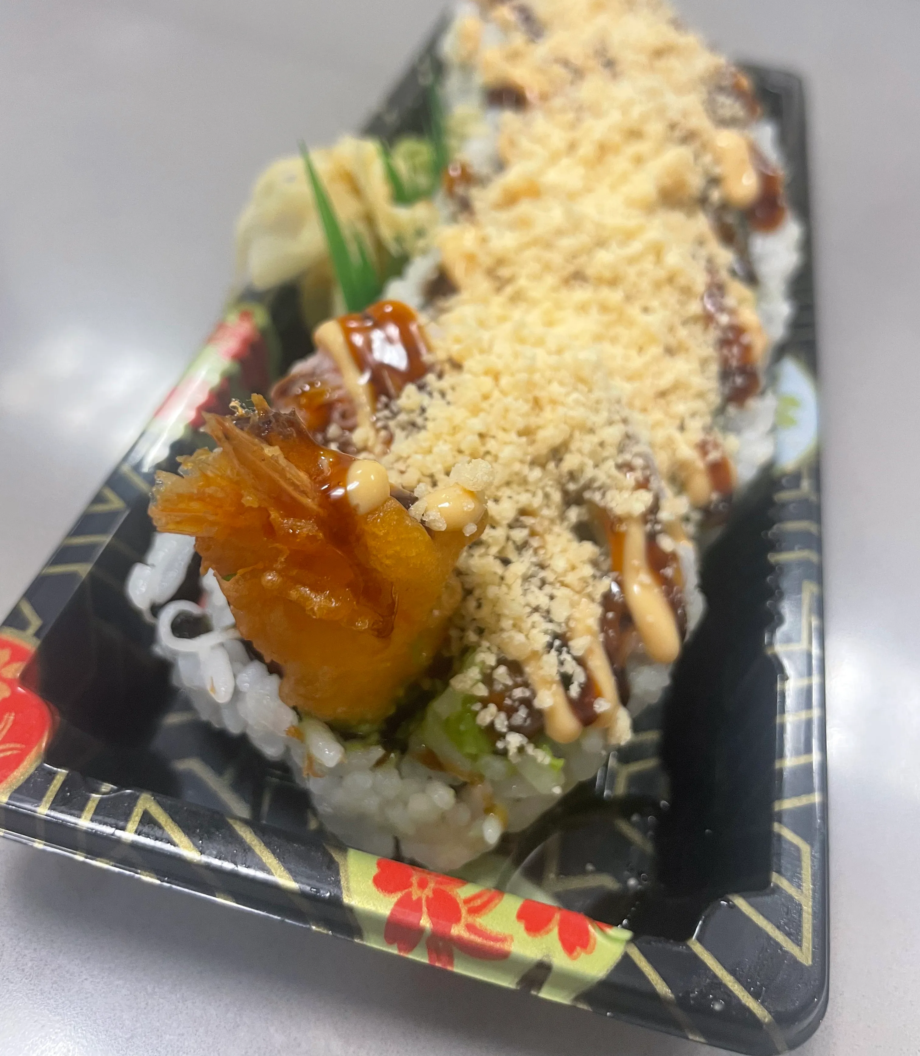Tuna, Salmon, White Fish, Avocado, Cucumber, Eel Sauce, Crunch With Spicy Dressing