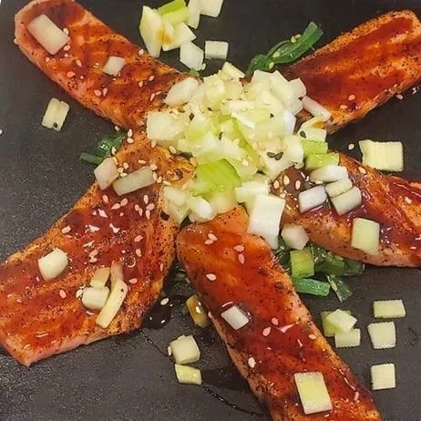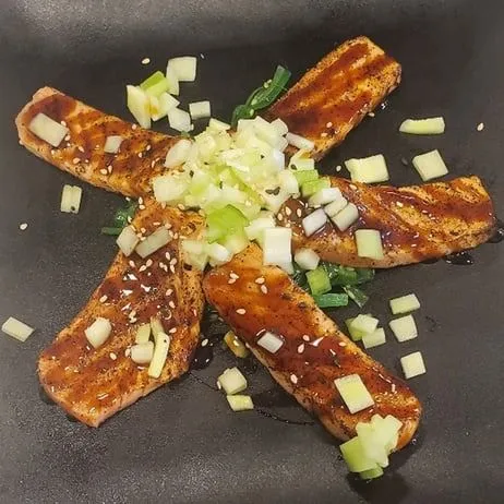 Seared Salmon 5 Pcs With Seaweed Salad.
