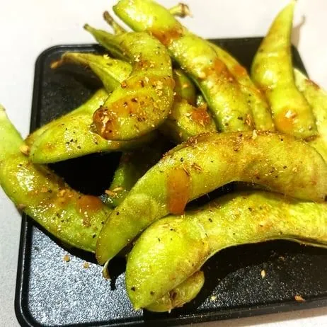 Edamame with Cajun seasoning and Spicy sauce. 6oz