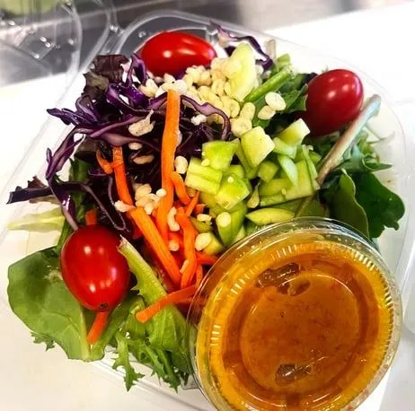 Iceberg, Spring Mix, Carrot, Red Cabbage, Grape Tomato, Crunch With Ginger Dressing